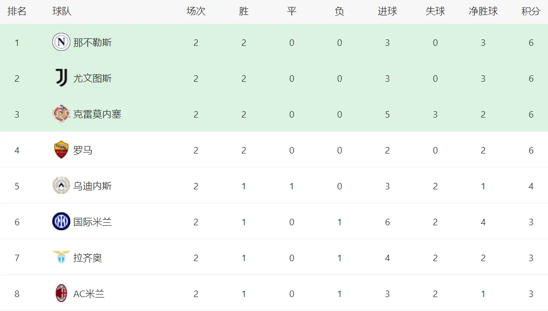 意甲第2轮进行了多场比赛。尤文图斯征服了客场,以1-0险胜热那亚。这场比赛尤文图斯控球率56%,全场13次射门,只有3次射正,但抓住了一次机会完成致命一击。弗拉霍维奇在第73分钟头球破门!热那亚最后时刻有绝平的机会,只可惜马西尼的头球攻门击中了门框。最终尤文图斯有惊无险拿下比赛。尤文图斯新赛季开局完美,取得两连胜,而且两场比分都完成零封。 国际米兰主场翻车了,惨遭乌迪内斯逆袭。这场比赛国际米兰开局不错,邓弗里斯在第17分钟就帮助国际米兰取得领先。但是,之后形势急转直下,国际米兰接连丢球。先是邓弗里斯手球送礼,凯南-戴维斯点射破门。随后阿蒂尔-阿塔兜射破门,帮助乌迪内斯反超。剩下的时间国际米兰虽然不断加强攻势,但是却始终与进球无缘,迪马尔科的进球被吹越位。最终国际米兰不得不接受1-2的结果,爆冷输掉了比赛。 拉齐奥则在主场制造惨案,以4-0横扫维罗纳。这场比赛拉齐奥在开场3分钟就攻破了对手大门。贡多齐推射破门。随后,扎卡尼也进球了。这两粒进球都是卡斯特利亚诺斯送出的助攻。在第41分钟,卡斯特利亚诺斯自己进球了,他头球破门,扩大比分。半场拉齐奥就3球领先,比赛已经提前失去了悬念。比赛最后时刻,布拉耶-迪亚捅射破门杀死比赛。拉齐奥用一场大胜走出了首轮比赛输给科曼的阴影。 在积分榜上,那不勒斯2战拿到6分排名榜首。尤文图斯也是6分排名第2。克雷莫内塞这匹黑马也是2战全胜,拿到6分,但净胜球只有2球,排名第3。罗马2轮比赛都是1-0获胜,2粒进球换来6分,排名第4。乌迪内斯拿到4分,排名第5。而国际米兰、拉齐奥和AC米兰这3支球队都是1胜1负的战绩,只拿到3分。 |